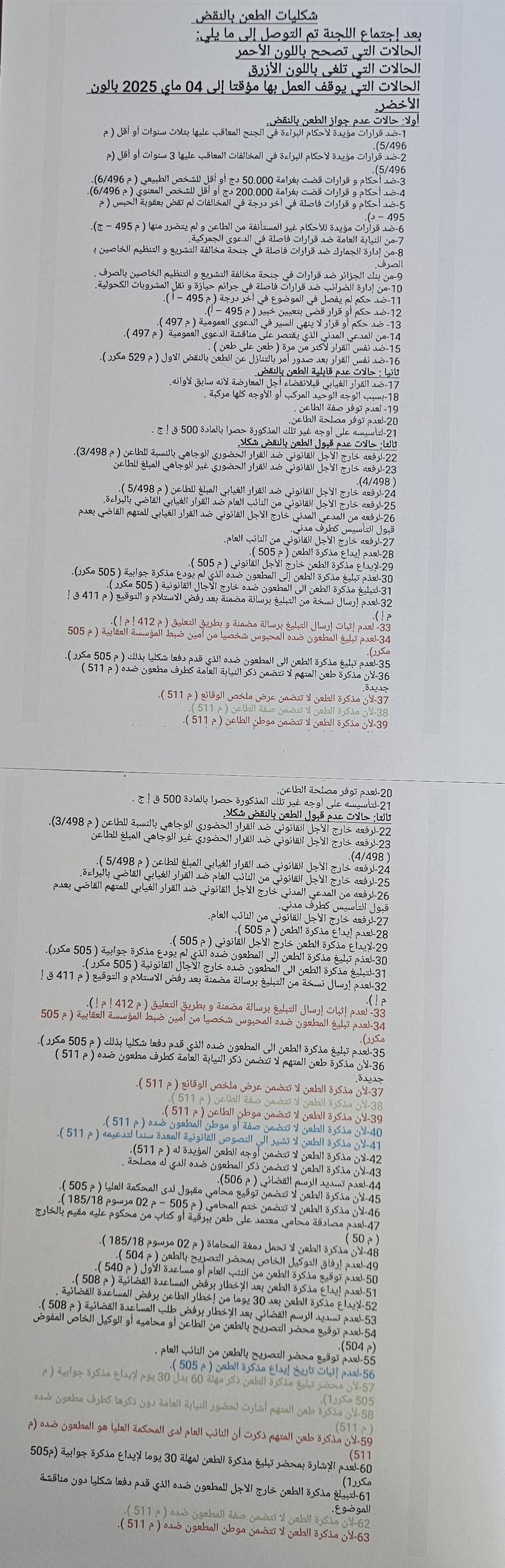 Pour les autres vices de forme, il a été convenu lors de la réunion conjointe Cour suprême - Conseil de l’Union nationale des ordres des avocats de reconsidérer certains cas d’irrecevabilités du pourvoi en cassation susceptibles d’être soulevés d’office par voie d’ordonnance digitalisée et d’en supprimer d’autres. Ainsi deux tableaux ont été établis , le premier contient une liste 16 cas d’irrecevabilités qui ont fait l’objet de discutions et de propositions de suppression ou de modification , et le deuxième contient l’ensemble des cas d’irrecevabilités initialement fixés au nombre de 63 avec indication des cas qui feront l’objet de modification , de suppression ou de suspension provisoire .Ainsi , si les irrecevabilités de fond qui ont toujours été considérées par la jurisprudence de la Cour suprême comme des irrégularités substantielles non régularisables ont fait l’unanimité , par contre la mise en application de la procédure de rejet automatisé du pourvoi en cassation en cas d’irrecevabilité de forme du mémoire de cassation ( défaut de mention de la qualité du demandeur , défaut de mention de la qualité du défendeur , procès-verbal de notification du mémoire de cassation indique le délai de 60 jours au lieu de 30 jours pour le dépôt du mémoire en défense , mention du ministère public sans indication de sa qualité de défendeur ) a été différée suivant le communiqué du Conseil de l’Union nationale des ordres des avocats au 4 mai 2025 . Par conséquent les pourvois en cassation irréguliers introduits avant la date du 4 mai 2025 seront déclarés recevables et doivent être examinés suivant la procédure normale en statuant au fond par un arrêt rendu par la section des délits et des contraventions en sa formation collégiale .Par contre les pourvois en cassation formés après la date du 4 mai 2025 seront automatiquement rejetés par voie d’ordonnance du président de section s’ils sont entachés par l’une de ces irrégularités de forme.